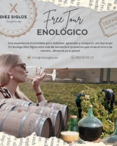 Las plazas para este freetour son limitadas, así que te recomendamos reservar con antelación a través de nuestra web diezsiglos.es o llamando al 983 55 99 10. Este noviembre, te invitamos a vivir Diez Siglos en su versión más cercana y flexible. Ven a disfrutar del enoturismo y de esos momentos especiales que solo un buen vino puede crear.